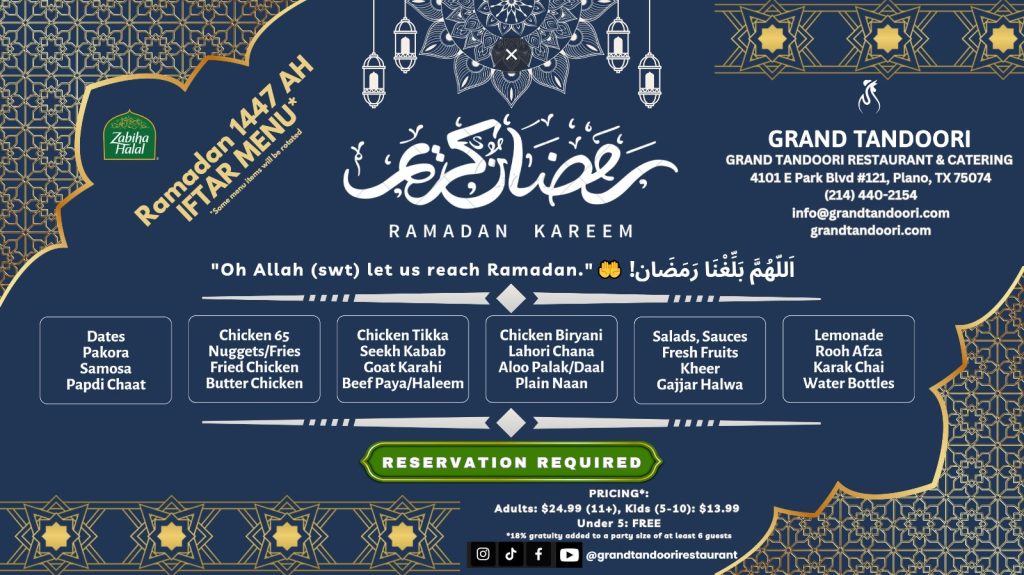 Weekend Sahoor (Saturday and Sunday only): 3:30 AM to 5 AM (RESERVATIONS REQUIRED)