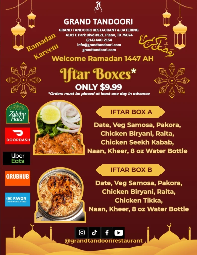 ACCEPTING RESERVATIONS: Submit request from website or email info@grandtandoori.com